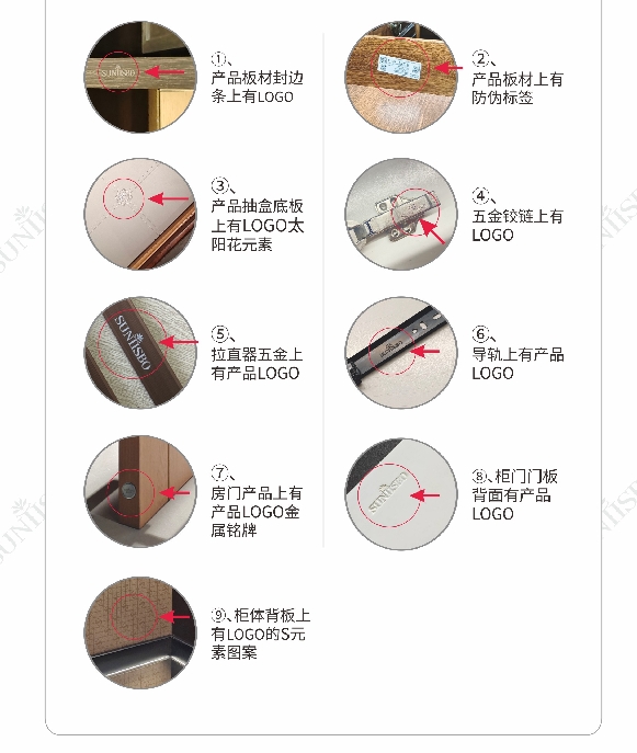 ①、产品板材封边条上有LOGO